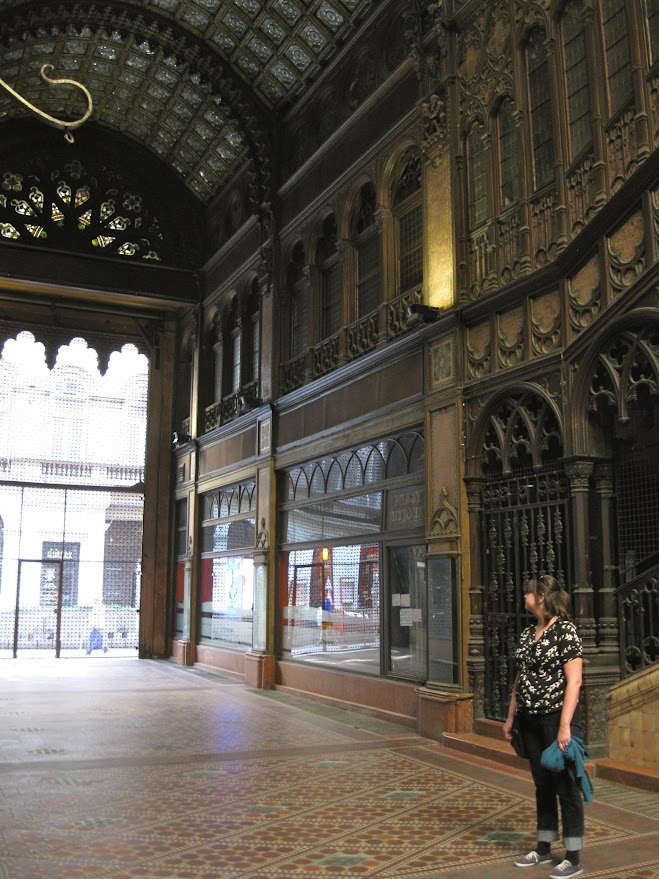 One of the coolest things for me was the Parisi Udvar, an old Parisian styled shopping gallery, which is basically a mishmash of liberty style/neo-gothic porn. This is where the Budapest cafe scene from Tinker Tailer Soldier Spy was filmed. Sadly, all of the shop spaces are currently empty, and it's difficult to understand why. This would seem to be prime real-estate (why is it not filled with posh restaurants or swanky clothing boutiques?), but surely there's gotta be some hassle-filled bureaucratic explanation, or very possibly a financial one. Still, I'm glad it's open so that geeks like us can go in and wander around.