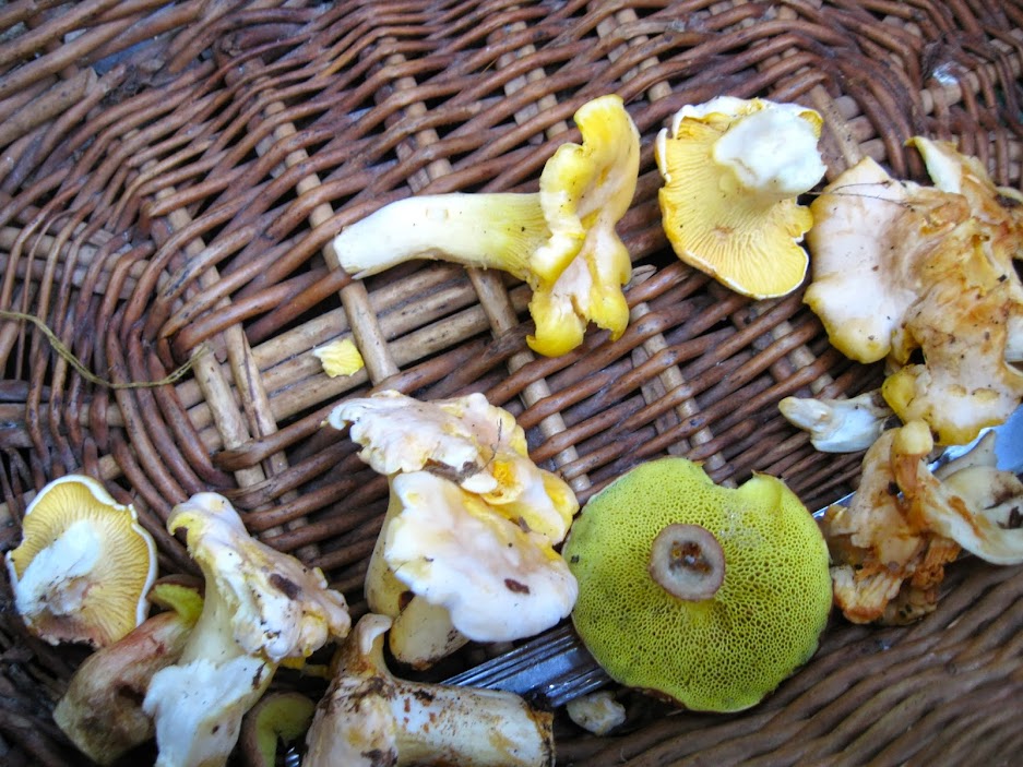 | Scant but still nice findings from an earlier hunting excursion in June 2013: a bunch of chanterelles and a few suchohriby. |