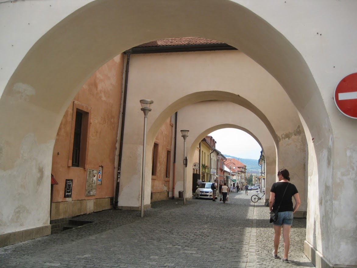At any rate, once out of Prešov, you're back on a scenic, winding country road. We arrived at the center of Bardejov in a little over three hours, and pulled into a small parking lot where we were greeted by a friendly parking attendant (Slovakia's streets have no parking meters; in any urban areas with paid parking, you have to find what is typically a middle-aged person milling about in a fluorescent yellow vest and serious bed-head, who you pay for parking. One would think Slovakia's cities and towns would do the math and see how over time an investment in parking meters would pay for itself and therefore bring more revenue over the long term, but I suspect the current system is part of some state or local employment program...) who even gave us a free map of the town.