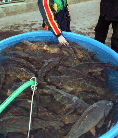What's even stranger is the kind of fish that many Slovaks fry up for this occasion: carp. No, that is not a type-o. Slovaks love to eat carp, and around Christmas time grocery stores have these plastic tubs packed with live carp swimming around in slightly scuzzy water.