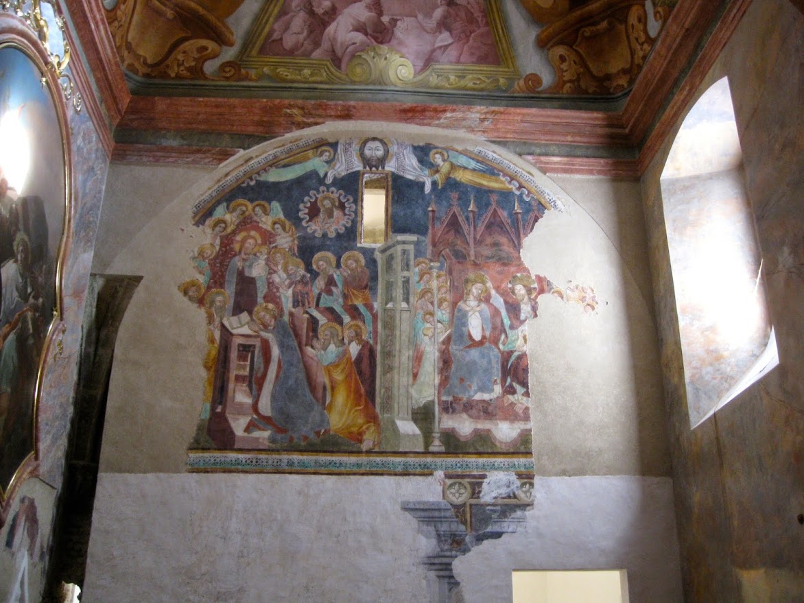 The cathedral made news recently when a rare, invaluable 14th-century medieval fresco was discovered on the wall behind an ornate 17th-century marble altarpiece, itself an important work of art. There was a wee bit of controversy when the church decided to relocate the gigantic altar from its intended spot to the other end of the lower nave, so as to uncover and display the fresco. The fresco is believed to be the only one of its kind in central Europe, as it's much more typical of frescoes from central Italy.