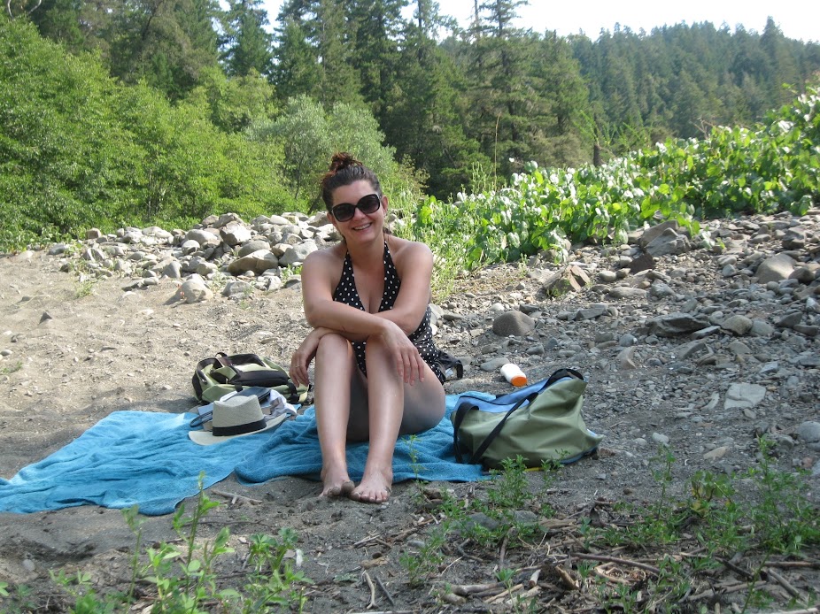 We both love baking on the sandy beach in the sun while reading a book, then going into the river to cool off and swim for a while, and basically just repeat that throughout the day until we get hungry for dinner and go back to the campsite. This more peaceful section of the river has a rock ledge that's fairly easy to climb to and is about, oh, maybe 15 feet high, so nothing too crazy, but high enough for me to get my rock diving thrill.