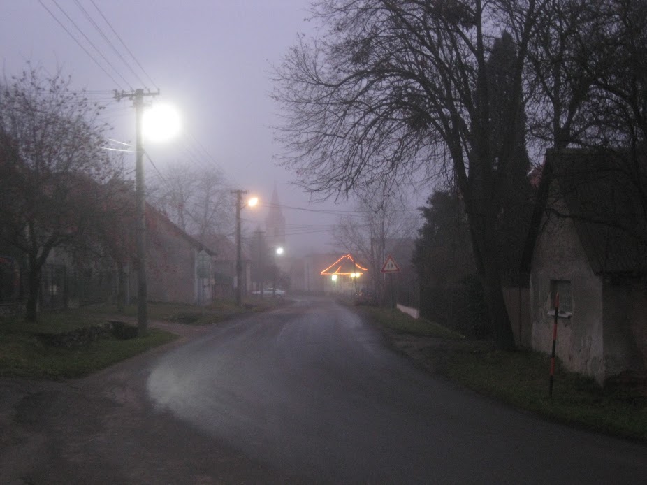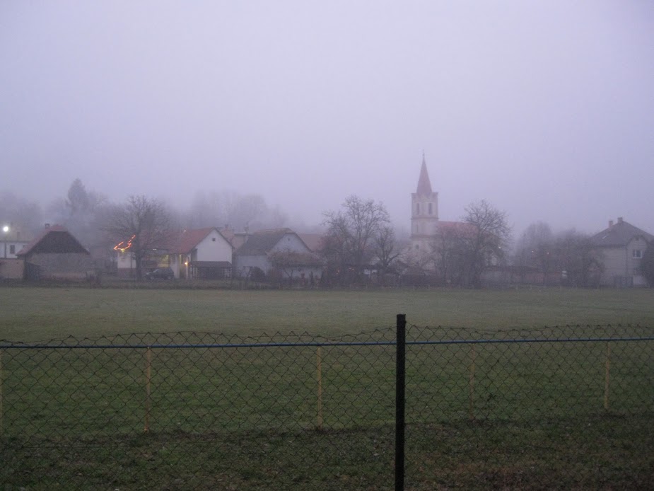 Everyone here has been grumbling about how the weather has been very un-Christmas-like this season: zero snow (at lower elevations), not super cold (temps have remained above freezing), and much of the country seems to have been covered in an eerily dense blanket of fog ("hmla" in Slovak). But on Xmas Eve, the lazy sun started breaking through the hmla, which brought a gorgeously hazy, wintery light to the rural landscape, so it was decided that this was the perfect time for a bike ride through the surrounding countryside.