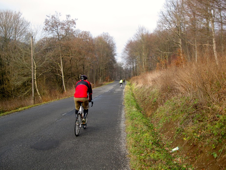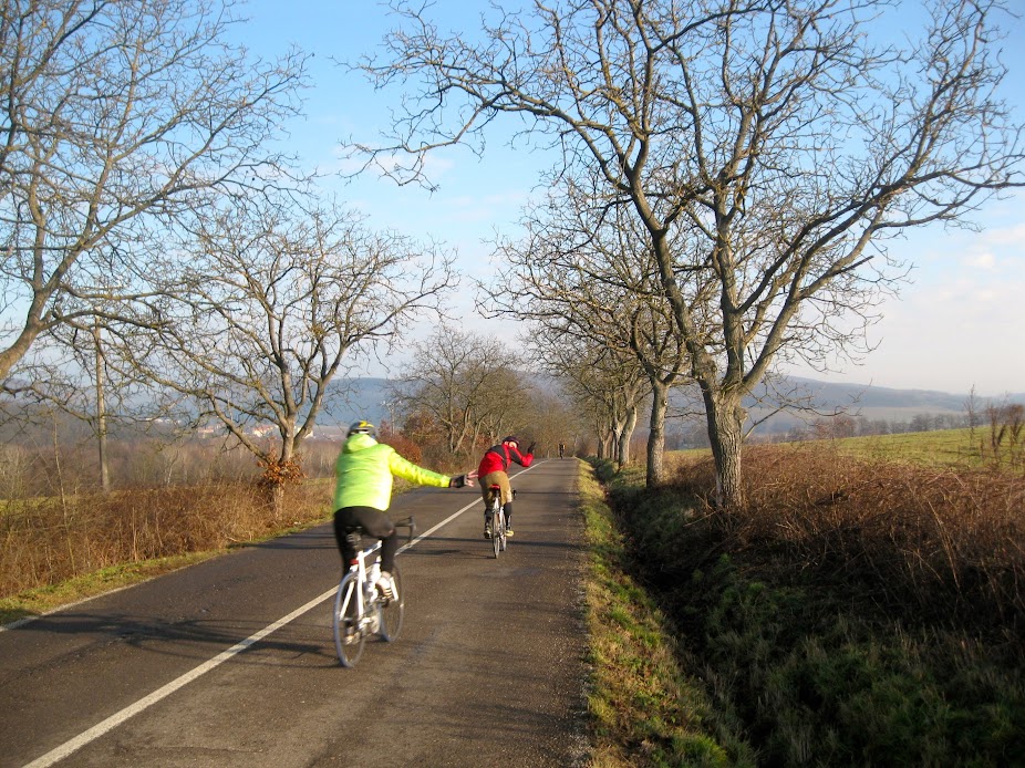 I could ride around this region every day. The scenery is lovely and I dig riding through the old, remote, worn-down villages. The roads were - surprisingly - not as terrible as I expected, with the exception of a few stretches that were pitted and pockmarked enough to throw one's spine out of whack. But other seemingly random stretches were almost silky smooth from recent repaving. I got to ride my old Peugeot 10-speed, which I rode the crap out of when we were living in Bratislava, and which is in dire need of a tune-up, but it worked out okay for this ride. Overall, it was awesome to get out of the house and into the cool, fresh winter air and work the phlegm out of the lungs.
