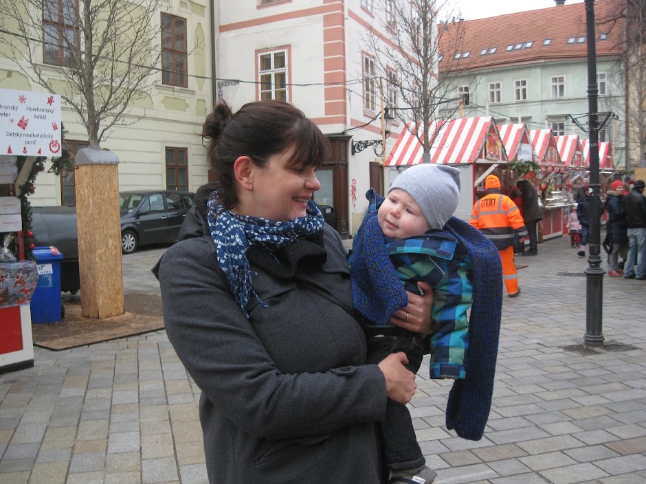 It was kind of fun to sit there and take in all the detail and the vastness of the space while sipping drinks and keeping Simon occupied. Simon was being very chatty and charmingly oblivious to how his babbling was reverberating throughout the echoey space. There were a few other babies there, so no one seemed to mind. The cafe's coffee wasn't the most amazing in the world, but their hot chocolate was tasty and rich. I just don't like being served coffee by people in bowties and black vests, though the service was much friendlier than normal for Slovakia, and it felt more laid back than the posh appearance of the place would suggest.