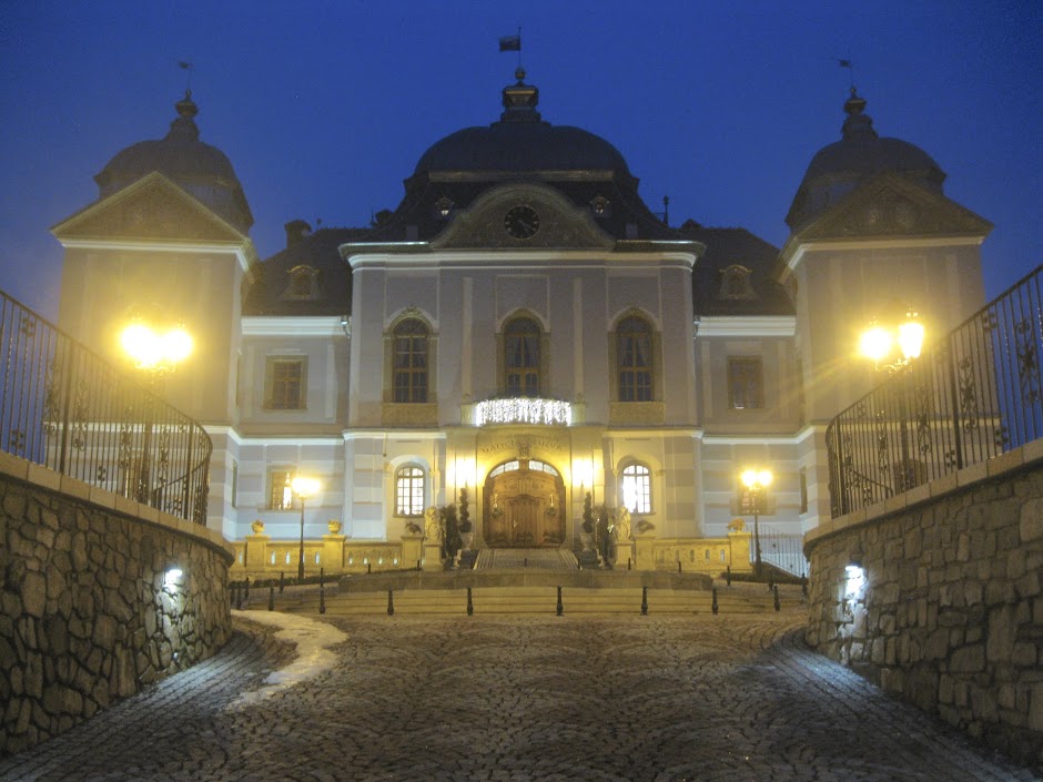 You can see the Halič castle sitting majestically on its hilltop from miles around in all directions, and I've always admired it from the various roads below. Its Renaissance-Baroque style and six ornate dome-capped towers really make it stand out. Halič is also notable for the fact that it's one of the few castles in the region that wasn't obliterated by Ottomans, Habsburgs, Hussites, etc., and is not lying in ruin today. (It actually was destroyed in some mid-18th-century conflict, but quickly rebuilt in its more Baroque style and made to look more palace-like.) I'd always wanted to see it up close, but during its restoration it was totally fenced off, and if you approached the padlocked chainlink gate near the bottom of the hill, vicious German shepherds would come charging down the driveway on the other side of the fence and bark angrily.