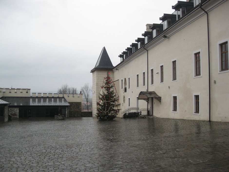 The castle appears to be doing okay so far, and the cafe was reasonably full when we were there, but I do have to wonder just whom this hotel is catering to. I think it's way too far off the beaten path for most American/Rick Steves-reading tourists, not to mention most British or western European travelers, most of whom seldom venture beyond Bratislava. I doubt there's enough business-related activity in the region to lure anyone on out-of-town business trips either. I suspect its clientele consists mostly of well-off Slovaks and Hungarians, maybe Russians too, and possibly some Czechs. Spa culture is huge among Slovaks, Czechs, Hungarians, and other central and eastern Europeans, and the facility's spa probably plays a big part in luring clientele. The castle also has banquet rooms that can be rented for weddings and other functions, so that's surely another source of revenue. Either way, I'm glad that centuries-old buildings like this are being preserved, but I hope it can stay in business.