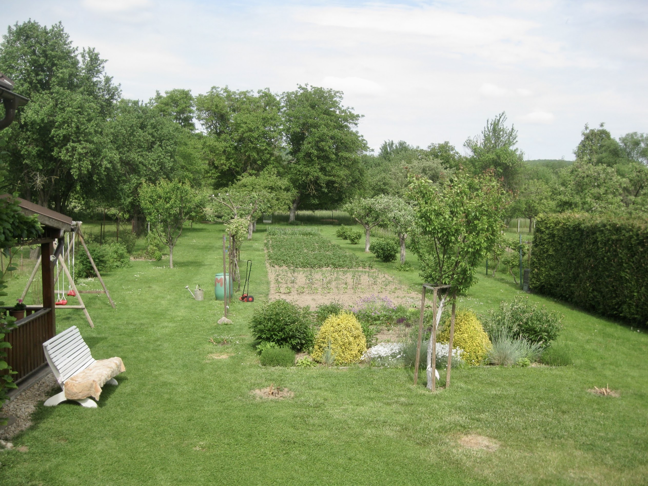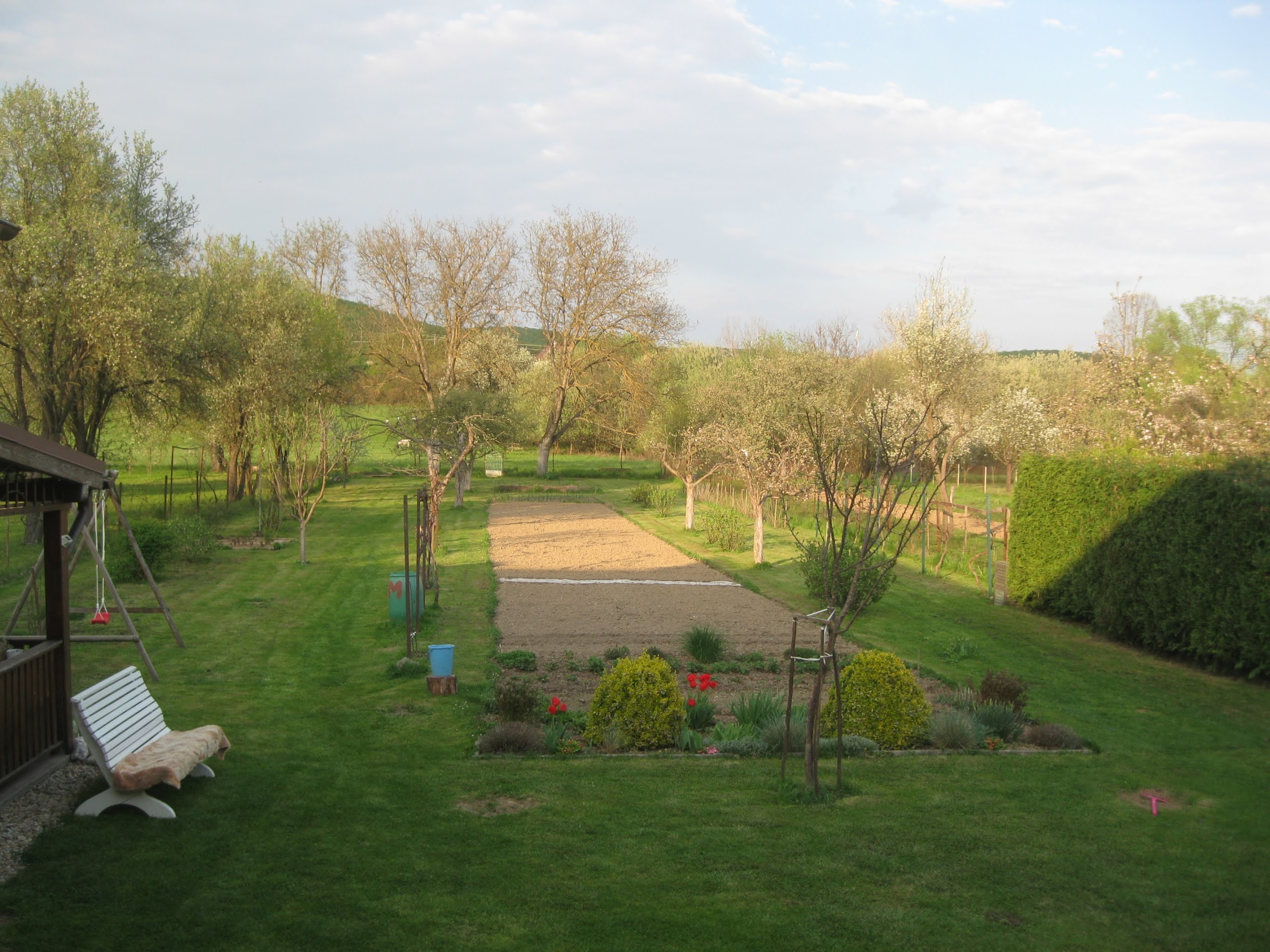 | What a difference a month makes! Compare this shot of Terezia's mom's backyard and garden, taken in the end of April, with the photo below taken in late May. |