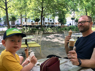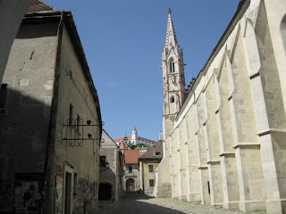I realize nearly everything we've done on this trip has involved visiting towns and sites that we've already explored - and written about - but part of what makes this trip different is that Simon is now old enough to have some kind of understanding of the places we're visiting, and to make long-lasting memories of it all (he remembers nothing of our previous trips to Slovakia). What's cool is that he now points things out that I'm often pointing out. For example, we'll pass by some cool, old, ornate Gothic clock tower or church spire, and Simon will say, "Did you see that tower, Dad? Did you take a picture of it? Do you have your camera?" So, I don't know how much he's truly appreciating the value in these things, but it's cool that he's now noticing the things that I focus on and processing them.