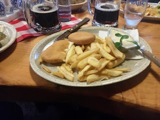 On our first night in Bernolákovo, I met up with my British expat friend James. I feel bad because I always end up making him trek out from Bratislava via bus or train to meet in some dingy restaurant/pub in Bernolákovo. He says he's happy to do it, but at some point I'm going to need to overcome my fear of navigating the confusing regional bus system by myself. This time we went to the El Camino Pub and Restaurant, located at the center of "downtown" Bernolákovo's wild, pulsating nightlife. El Camino has a large, shaded, outdoor terrace - perfect for that evening's still-warm weather after a day of temperatures in the mid-80s.