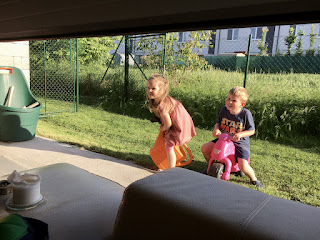 It was awesome to see Simon and Sasha (Ľudmila and Chris' older daughter) playing so nicely with each other. Sasha just turned five, so she and Simon are the same age. Even though they don't speak the same language (Sasha speaks Slovak and German, but knows only very limited English; Simon obviously speaks English, but his Slovak is very limited), they still had oodles of fun together, and they found their own ways to communicate with each other.