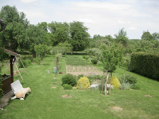 What a difference a month makes! Compare this shot of Terezia's mom's backyard and garden, taken in the end of April, with the photo below taken in late May. |