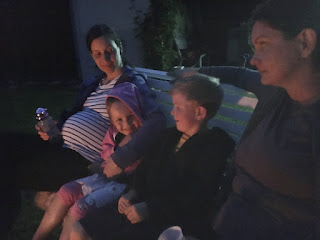 Sitting around a fire in Terezia's mom's backyard, grilling špekačka (like a fat, short, pork-based hotdog). |
