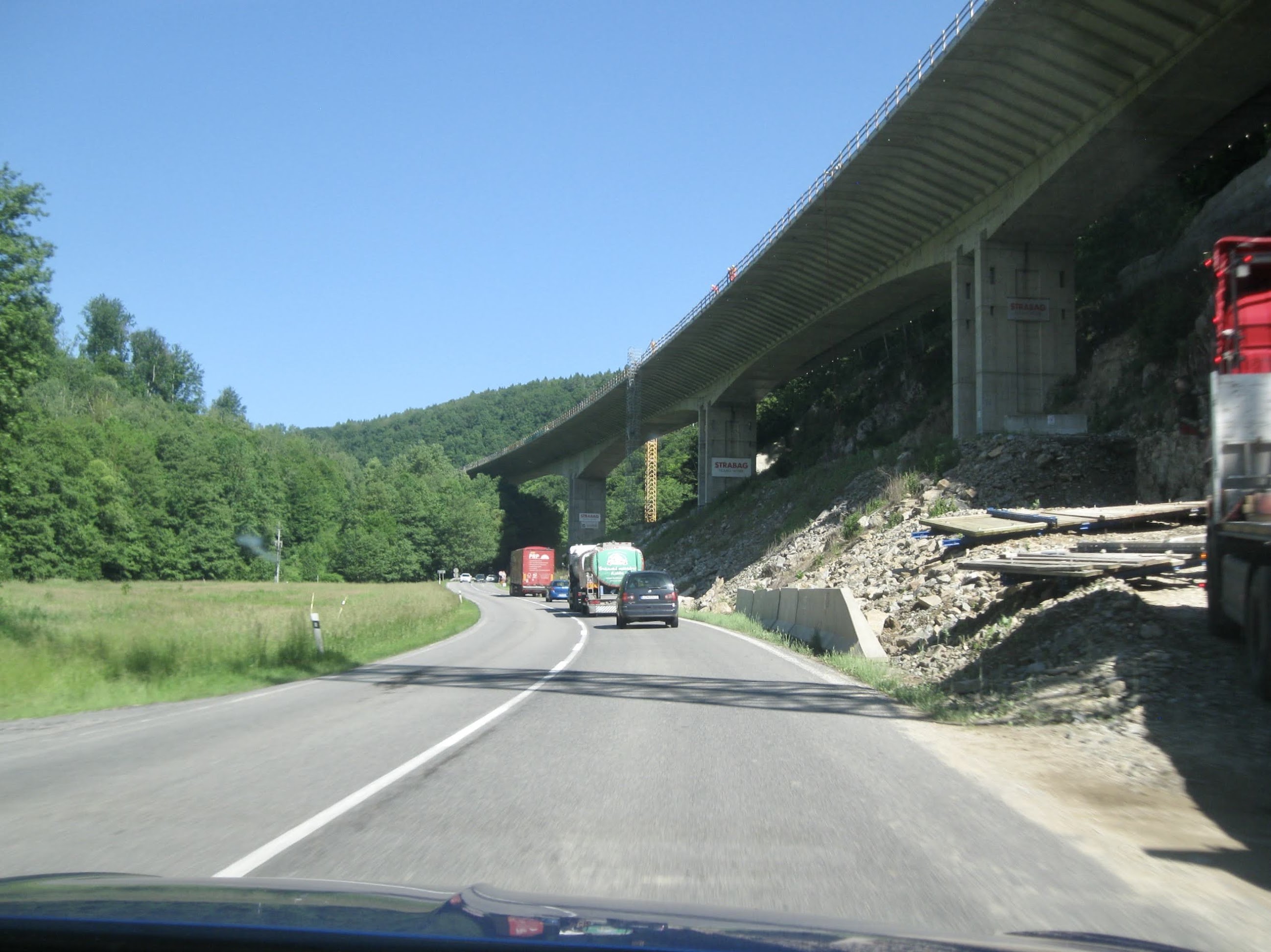 On this section of road, not far from where Terezia's mom lives, you can see the new freeway being built over the two-lane highway. This area is so steep, mountainous, and winding, that the only way to build the freeway was as an elevated bridge running over the old highway.
