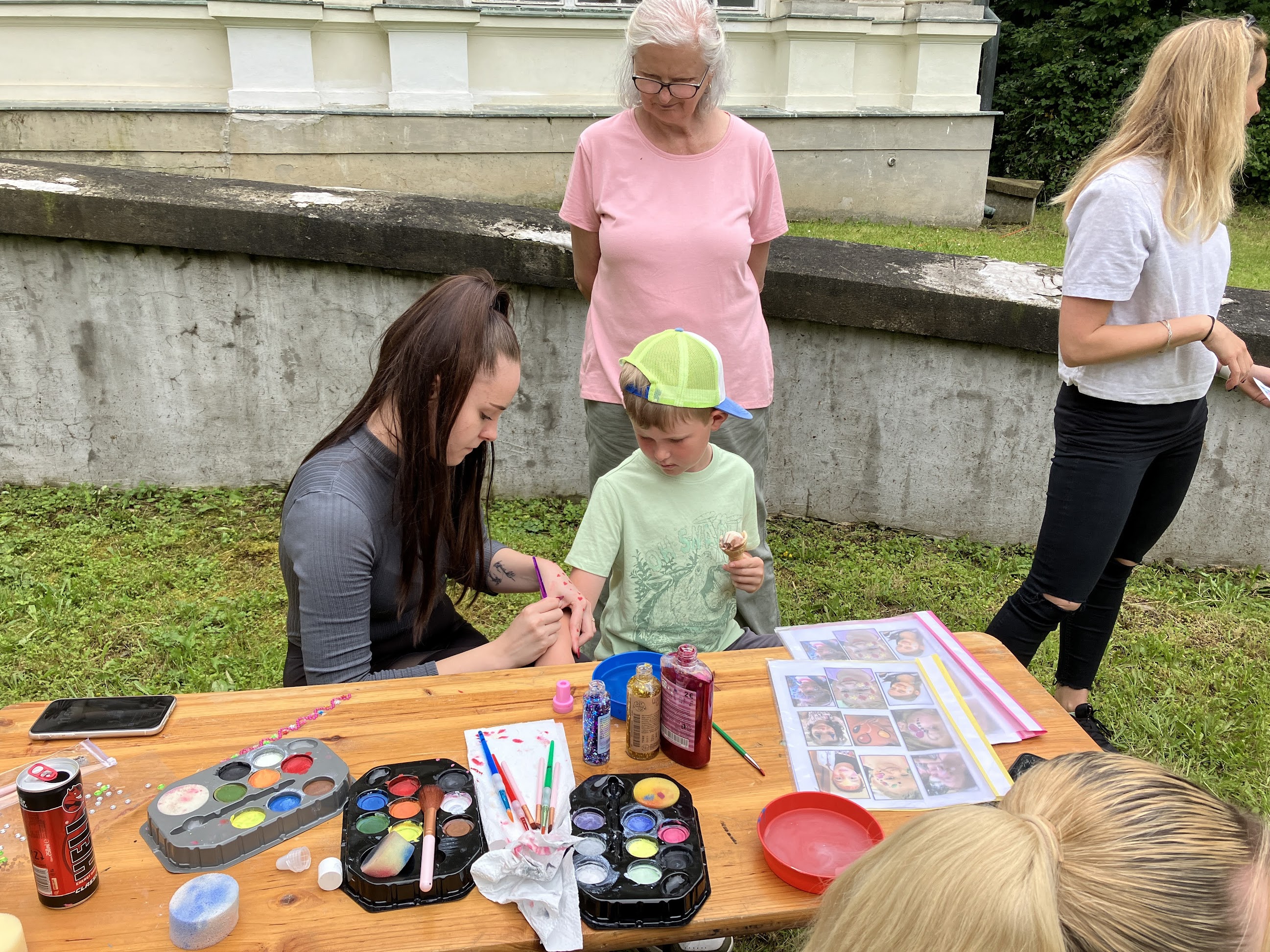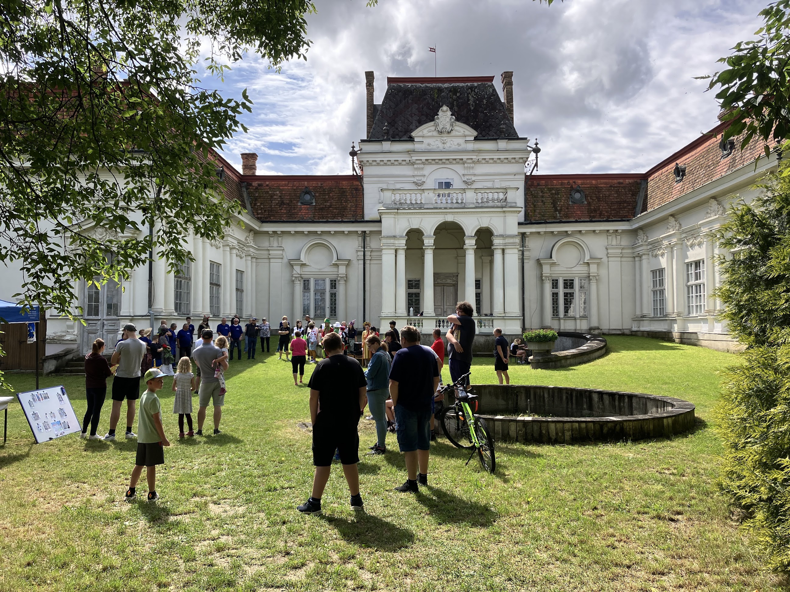 The village celebrated it with an event on the vast grounds of its ornate, historic 19th-century manor house that sits up on the hill. I've written about this cool old mansion briefly here and here (it's the only building of its kind in the village). The organizers set up a kind of course around the grounds with 10 stations for the kids, each of which "tested" different abilities.