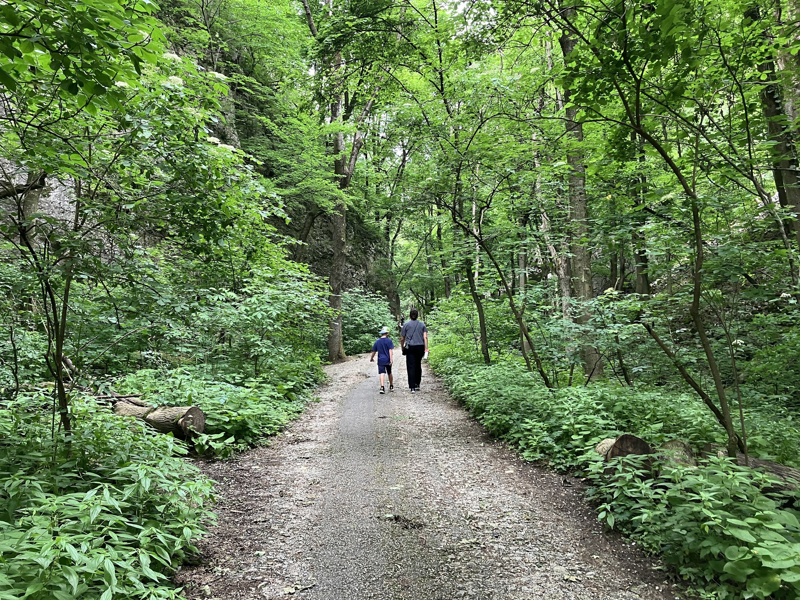 The ascent is mostly gentle and gradual, with only a few steeper stretches, so it's very doable with kids and less experienced hikers. And it's all under the shade of the dense canopy of trees, so it's probably a great place to escape the sun on hot days.